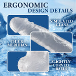 - Clear textured dildo for a deeply filled feel.